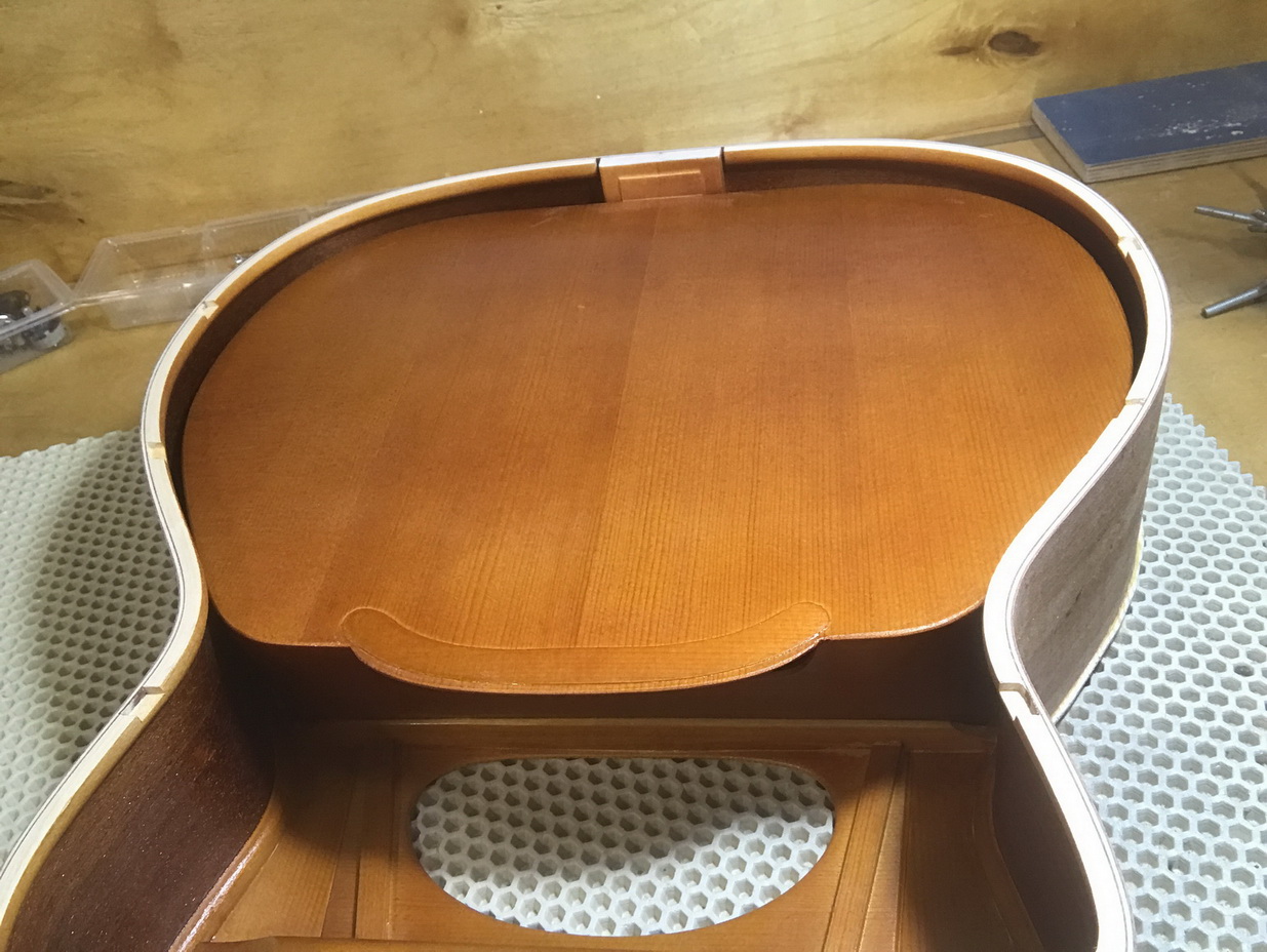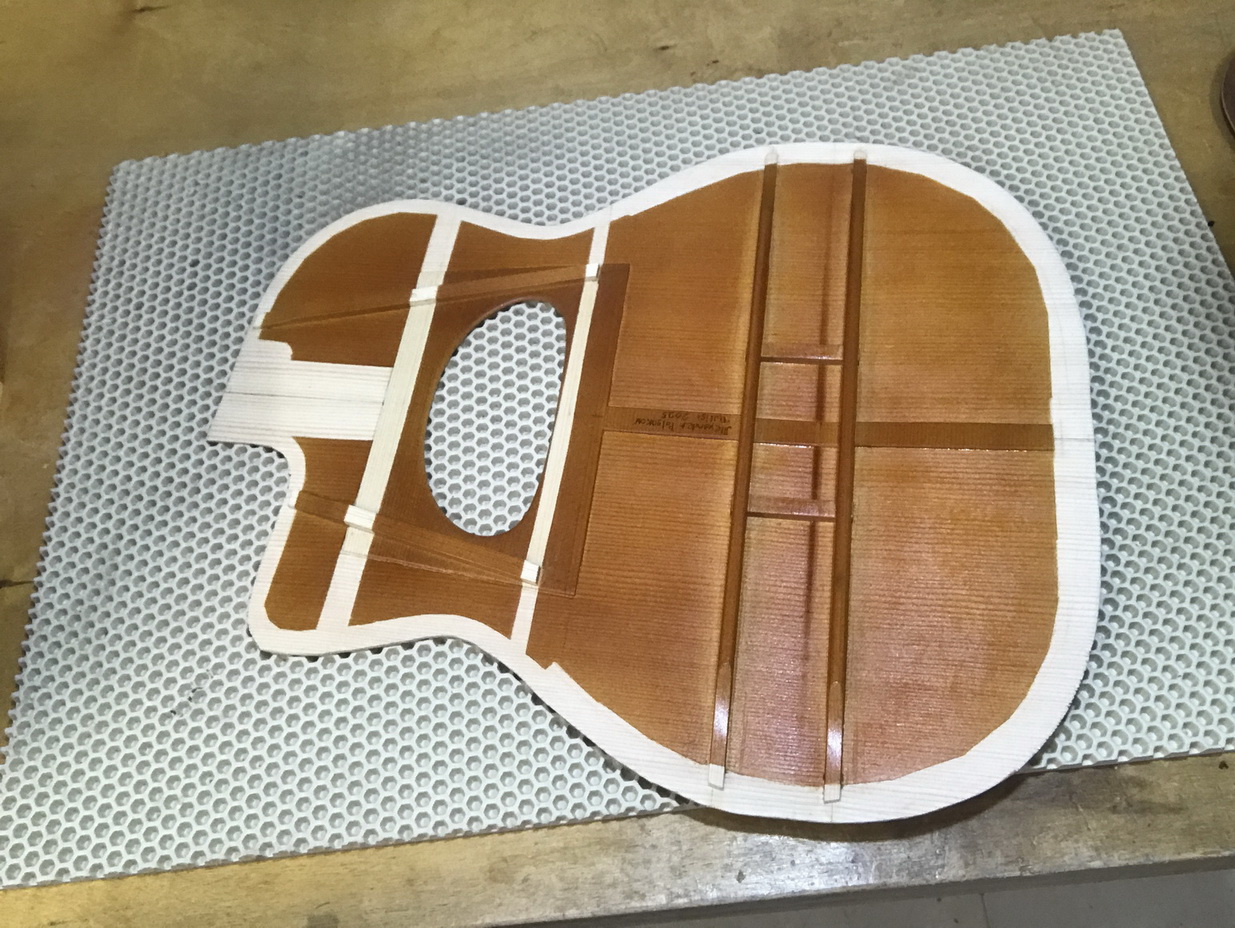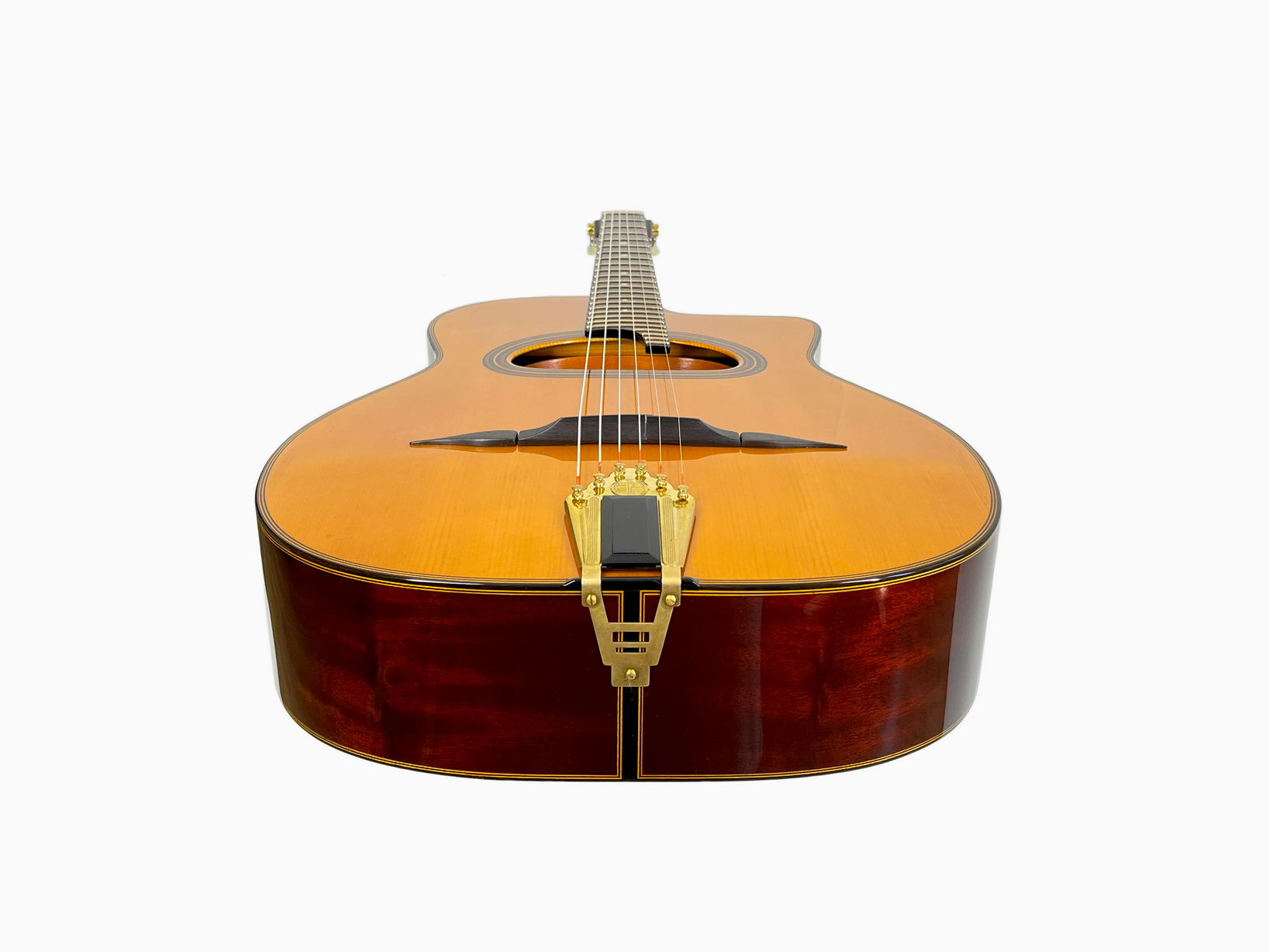 Accurate reproduction of Maccaferri original orchestra model with internal resonator. The guitar has built according to original plans. The top has pliage and the neck has aluminium reinforcement rods and original headstock joint, short 640mm scale and 12th fret neck to body joint, varnished interior as original guitar, nitrocellulose finish and Selmer's tuners replica! Weight of the guitar is 2 kilo.
