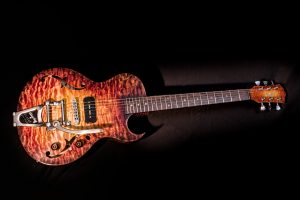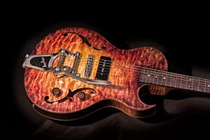 My passion for semi-hollow guitars like the 335 and acoustic guitars brings me to develop the SEL guitar, a perfect mix between the acoustic guitar making and the laminate top semi-hollow of the 60’s. My love for wood and ecology also drives me to make some guitar out of recycled wood and to develop a way to waste wood as little as possible for the SEL model.