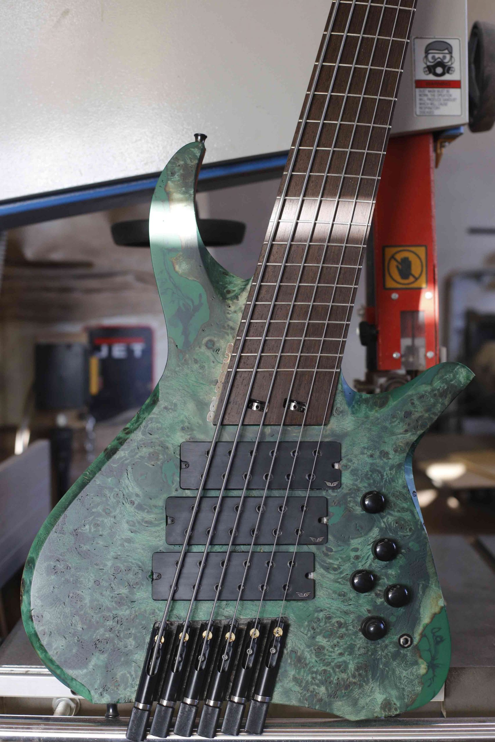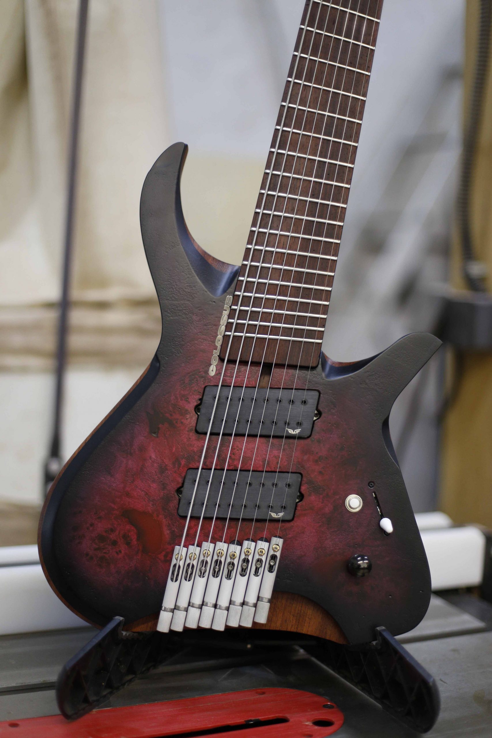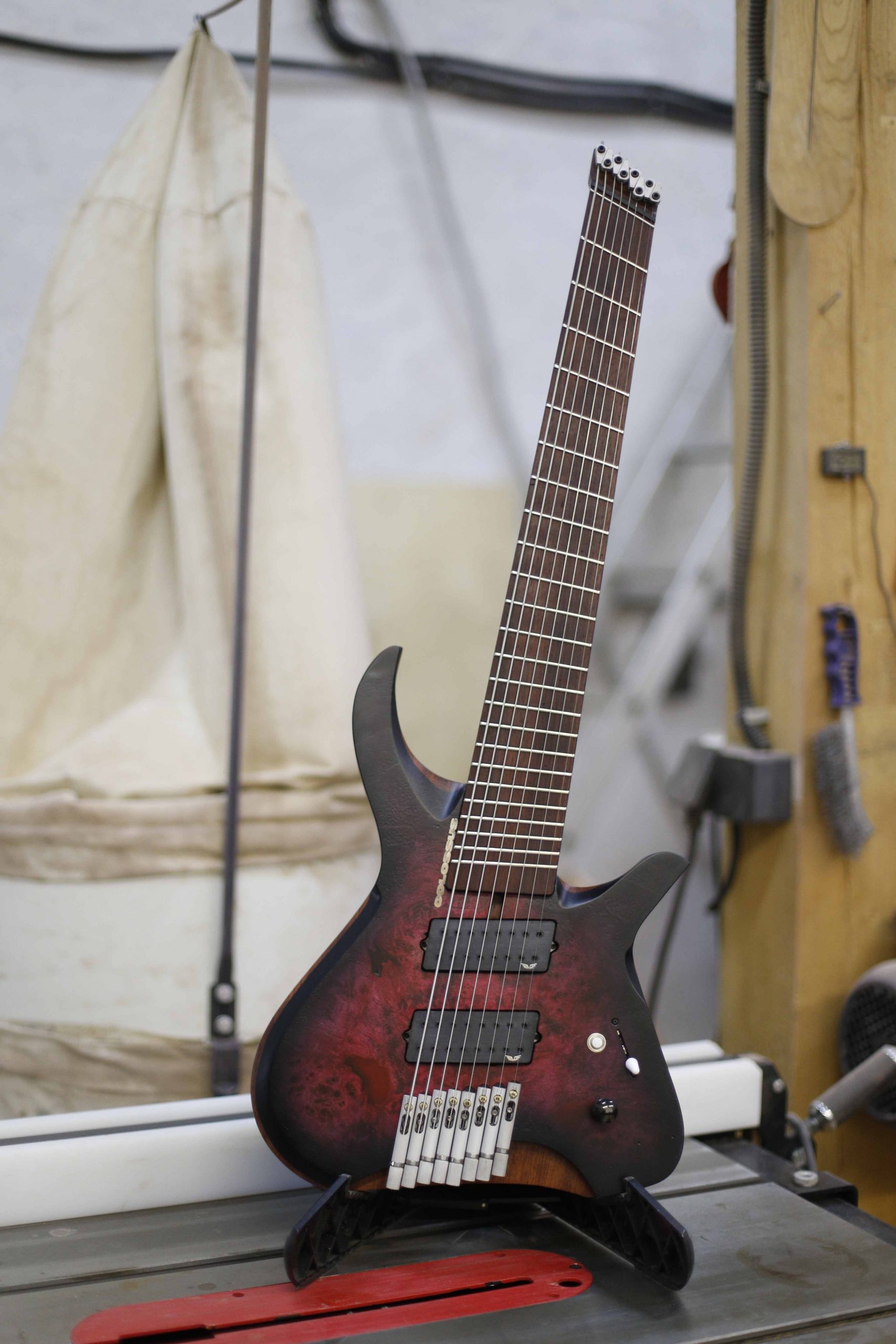 We love headless multiscale guitars, baritones, 9-10 str instruments, but we also do not avoid classical projects - strats, tele and lp archtops with set in neck.