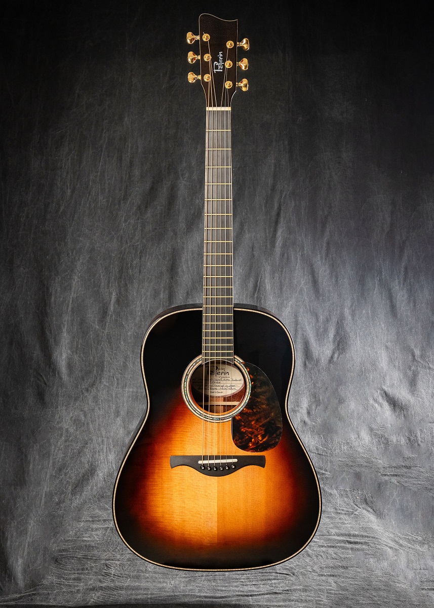 Finition de la caisse et du manche : Polyuréthane à haut lustre (très mince) avec fini  "couché de soleil" inspirée des vieilles Gibson
