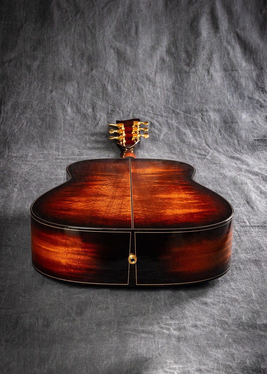 Soundbox and neck finish : High gloss polyurethane (very thin) with "Teardrop sunbuirst" inspired by old Gibson guitars