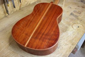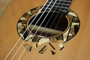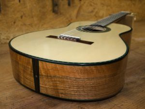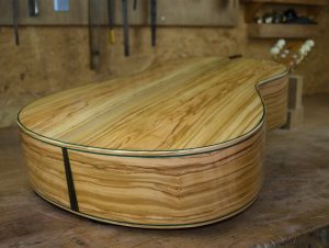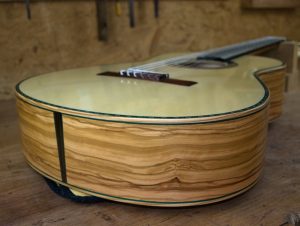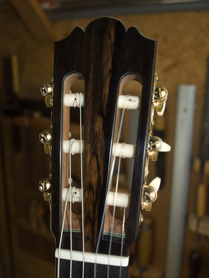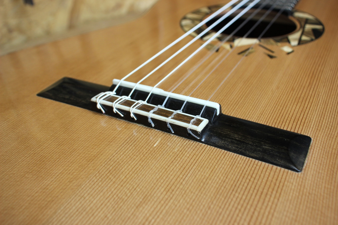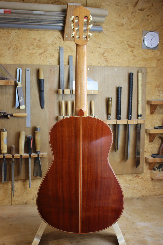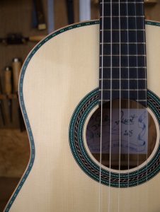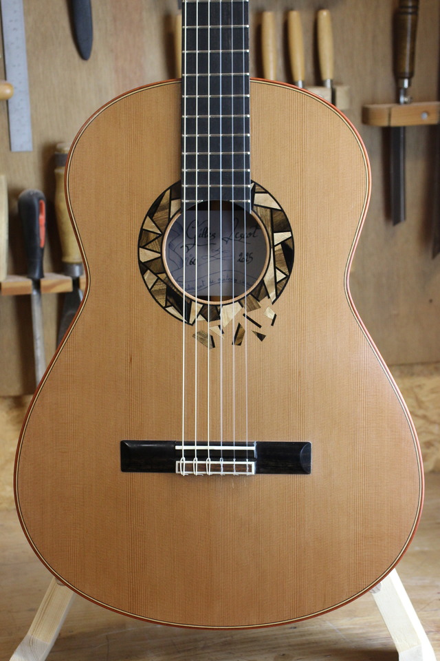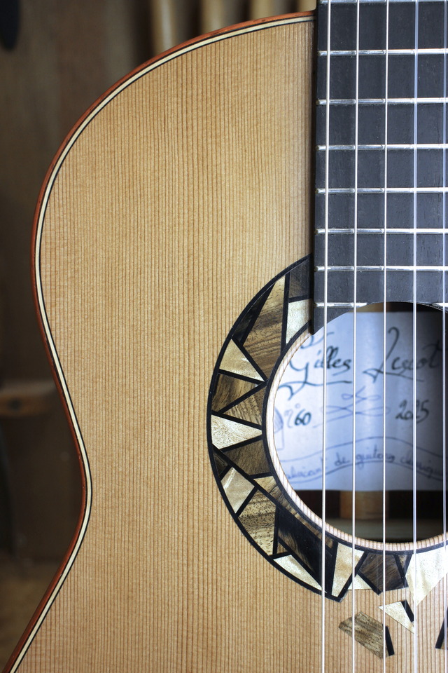 My instruments are built entirely by hand, individually, in Maffe (Belgium). They are a fusion of traditional craftsmanship and contemporary lutherie: lattice bracing for exceptional acoustic sensitivity and expressiveness; an elevated fingerboard and an arm rest for uncompromising playing comfort.