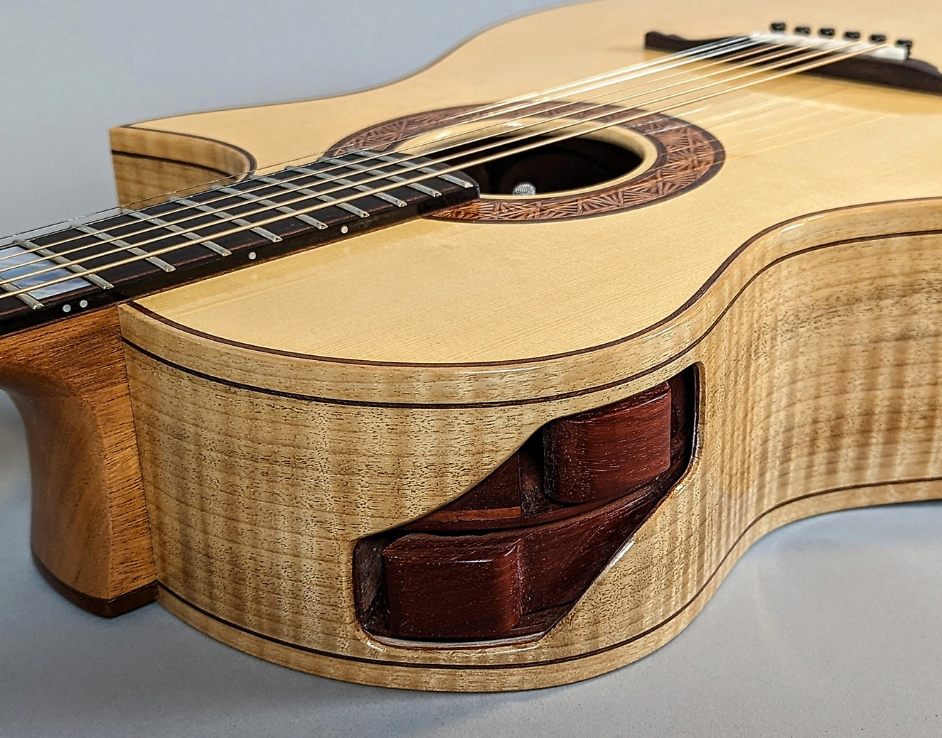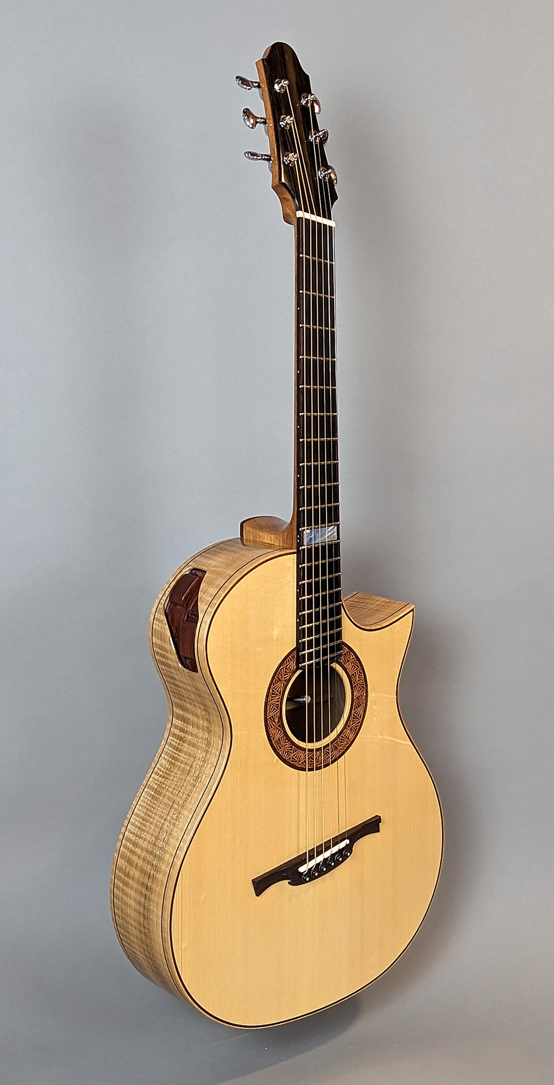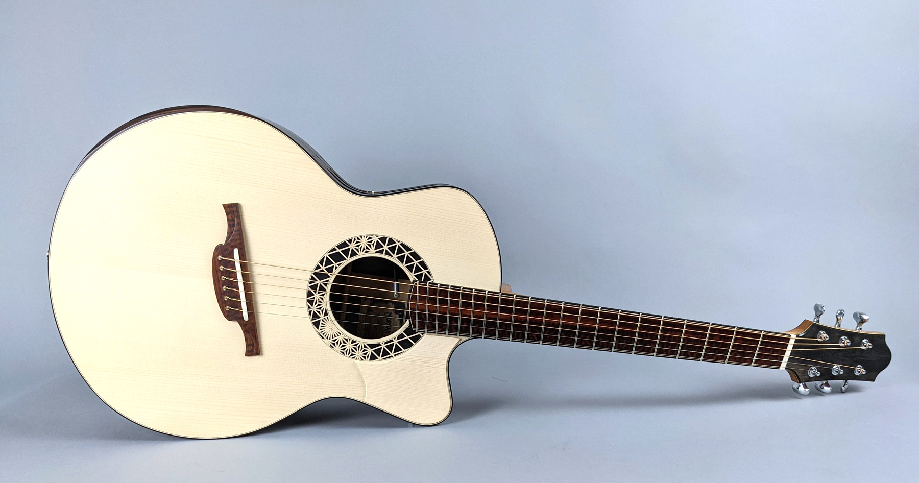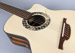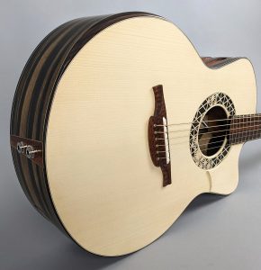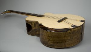 Morgan runs a one-man shop in the Berkshire mountains of Western Massachusetts, USA where he meticulously creates unique stringed instruments one at a time. His guitars feature the finest hand-selected materials, beautiful inlays, and choice tonewoods with a focus on sound and playability. Drawing on his 30 years of playing music and woodworking experience that began in his youth, Morgan has a unique perspective on guitar building that encompasses both craftsmanship and musicianship.