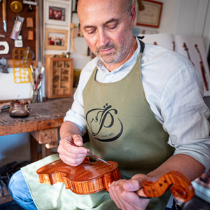 His instruments are made from Premium Balkan maple and spruce from the Rodopi Mountains, naturally dried in air for many years.