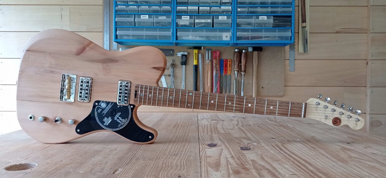 - Electronique : CTS VOL 500k Lin – TON 500k Log Push Pull – Condensateur Orange Drop 0.047 μF – Sélecteur 3 positions – Sortie jack Switchcraft – Câblage au fil tissu vintage