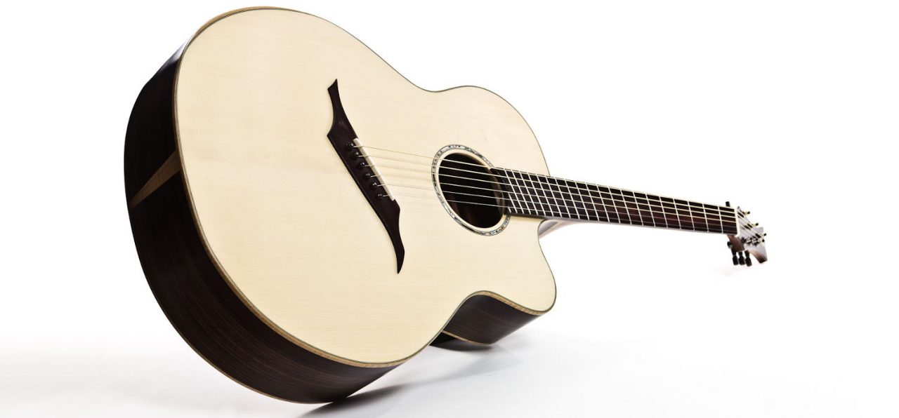 The fun is increased by a small side sound hole, which allows better feedback for the guitarist. At the same time, the audience in front of the guitar gets a finely nuanced sound impression. The Fanned Frets cause an optimal energy yield, with the result of the key note seeming to vibrate with almost endless sustain.